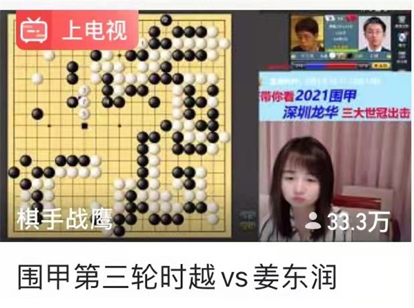 今日虎牙直播對(duì)深圳龍華隊(duì)的現(xiàn)場(chǎng)講解點(diǎn)評(píng)沖上了33.3萬人次的大關(guān),人氣可謂一路上升!職業(yè)女棋手戰(zhàn)鷹解說生動(dòng)有趣,棋迷們聽得也過癮。再有“龍哥”“申一冠”的迷粉,直播室熱鬧非凡!戰(zhàn)鷹是圍棋知名主播,作為深圳龍華隊(duì)網(wǎng)上直播合作人,為龍華隊(duì)的宣傳還真是帶來不小的效應(yīng)!明天繼續(xù)吧。