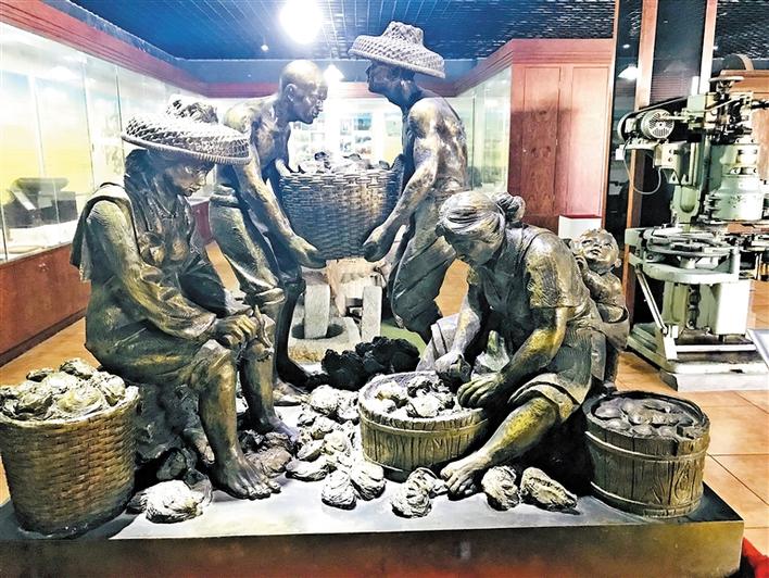 “茫茫大海接藍(lán)天,水下盡是養(yǎng)蠔田。阡陌田疇何界示,叔伯遙指高山巔?!辈┪镳^里這首關(guān)于“打山口”的詩歌深深吸引了記者。在長期的發(fā)展過程中,沙井蠔業(yè)逐步形成了打山口、流水定作息、集體協(xié)作等生產(chǎn)習(xí)俗和蠔殼砌墻、上香禮拜天后等生活習(xí)俗,有一整套成熟的養(yǎng)殖和加工技術(shù),形成了種蠔、挒蠔、搬蠔、撒蠔、屯蠔、撲蠔、撿蠔、開蠔等傳統(tǒng)工序。沙井蠔民生產(chǎn)習(xí)俗,世代相傳至今,具有一定的文化價值和社會價值,現(xiàn)已被列入深圳市非物質(zhì)文化遺產(chǎn)名錄。