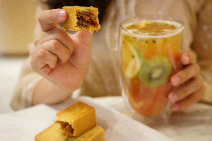 月餅有流心餡,鳳梨酥吃過流心的嗎?徐福記·呈味空間的咸蛋黃流心酥,跟傳統(tǒng)月餅有不同的酥軟的酥皮,吃起來口感綿密而不膩,是因?yàn)樗制だ锛尤肓四滔愦己竦陌布腰S油,烘焙界頂尖認(rèn)證的黃油,聞起來還有淡淡的奶香。內(nèi)餡是有香濃細(xì)滑的奶黃,里層藏著有流沙般的咸蛋黃,輕輕一咬,入口松化,餡料如熔巖般流出,飽滿的流心一下子就迸發(fā)喉嚨,軟諾的口感讓人欲罷不能,吃完還想吃。俗話說流心更用心,富到流油好意頭,今年來點(diǎn)不一樣的“暴富“!
