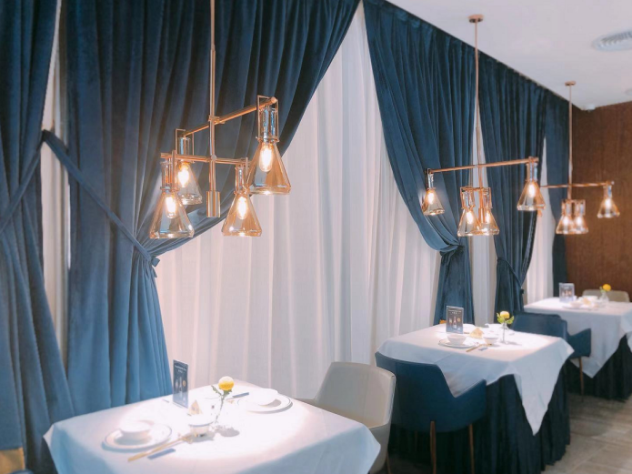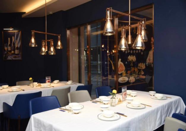 密室的大門,區(qū)隔開的完全是兩種不同的風(fēng)格。實(shí)驗(yàn)室風(fēng)格VS LOFT風(fēng),密室玩的是神秘的科學(xué)實(shí)驗(yàn)室氛圍,大堂則是完全敞亮通透的空間,整體以大叔紳士藍(lán)、玫瑰金為主色調(diào),線條利落的天花板吊頂,吊燈暖暖的光線投射在擺放講究的餐具上,浪漫又小資,再搭配大理石紋水泥地磚、木紋墻藝等,讓整個(gè)空間保持和諧統(tǒng)一的氛圍,又展現(xiàn)出豐富的層次感。廚房直接采用明檔的空間設(shè)計(jì),衛(wèi)生情況一目了然,除了大堂,還設(shè)有特色VIP室和半透明宴會(huì)廳,適合有重要會(huì)談和生日宴會(huì)需求的朋友。