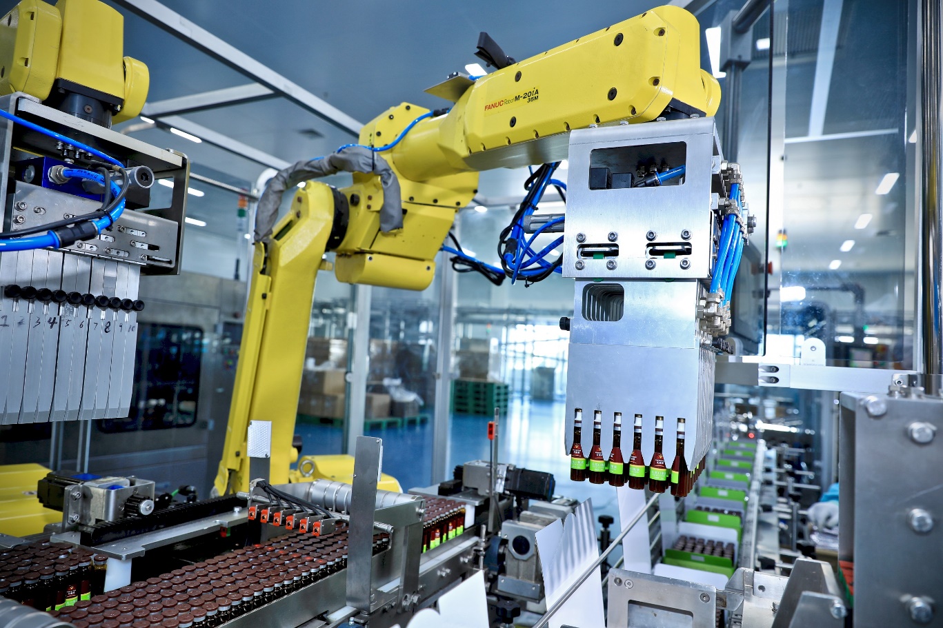 作為江門智造的代表企業(yè),無限極擁有符合GMP規(guī)范的高速玻璃瓶裝口服液生產(chǎn)線。在無限極具有示范作用的生產(chǎn)大樓中,有效元素的提取、濃縮、真空干燥等多道生產(chǎn)工序,均采用遠(yuǎn)程自動(dòng)化控制系統(tǒng)。采訪團(tuán)此行不僅了解到無限極健康產(chǎn)品的前景與趨勢(shì),還在“無人工廠”里見證了高自動(dòng)化的無限極健康食品的誕生過程。
