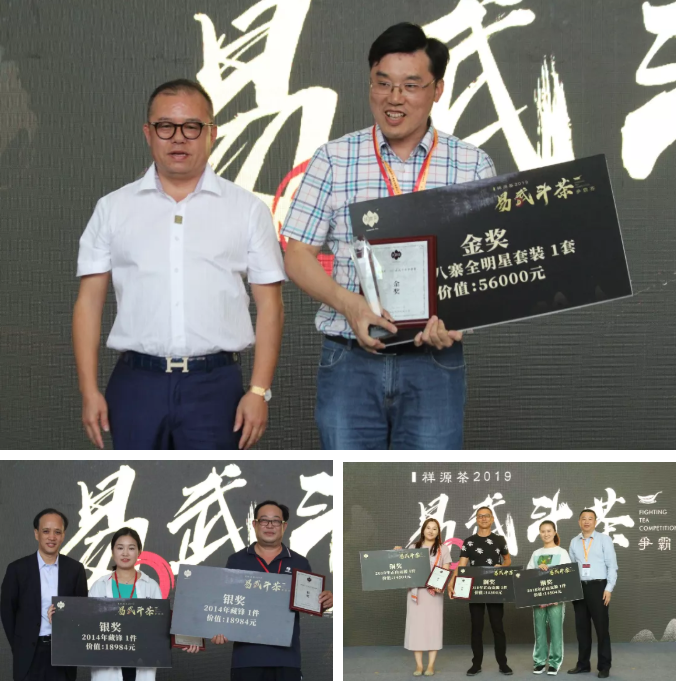 在歷時(shí)2個(gè)小時(shí),三輪激烈比拼過后,隨即公布金銀銅獎(jiǎng)得主,楊振林奪得本屆斗茶賽的金獎(jiǎng),贏得價(jià)值56000元的2016年“易武七村八寨全明星套裝”一套;銀獎(jiǎng)獎(jiǎng)品為價(jià)值18984元“2014年藏鋒”各一件;銅獎(jiǎng)獲得獎(jiǎng)品是價(jià)值14504元“2018年正山貢源”各一件;另外成功晉級第二輪的選手均獲參與獎(jiǎng),獎(jiǎng)品是2018年正山貢源一餅。