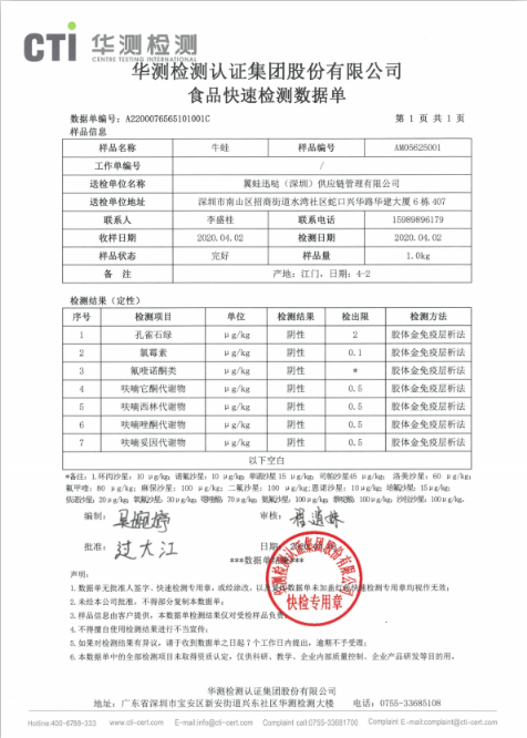 蛙來(lái)噠創(chuàng)始人羅清表示:對(duì)于食品安全管理,蛙來(lái)噠嚴(yán)格要求牛蛙來(lái)貨供應(yīng)商,每批來(lái)貨提供合格的第三方檢測(cè)報(bào)告,經(jīng)歷2019年10月的抽檢之后,我們?cè)黾恿藖?lái)貨后的再一次第三方送檢,并保證每批貨都送檢,以此保證食品安全質(zhì)量,并將繼續(xù)升級(jí)自我檢測(cè)標(biāo)準(zhǔn)。