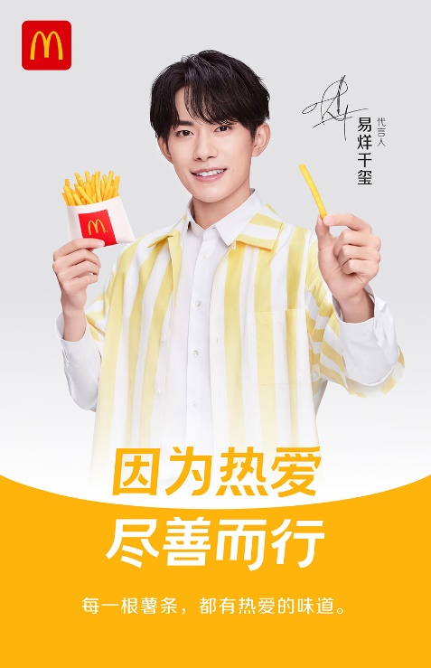 作為千禧一代的杰出代表,易烊千璽自小堅守對藝術(shù)的熱愛,以百煉成鋼的執(zhí)著對待每一段旋律、每一個舞步、每一句臺詞,只為在每一束聚光燈下綻放無瑕光芒。他熱愛挑戰(zhàn),不斷拓展自身發(fā)展的邊界,作為優(yōu)秀的演員、歌手和舞者,一次次呈現(xiàn)驚喜。同時,他身體力行做公益,用行動詮釋榜樣力量,是充滿正能量的青年偶像。易烊千璽的成長經(jīng)歷與個人發(fā)展和麥當(dāng)勞“因為熱愛,盡善而行”的品牌理念不謀而合,也因此促成了這次惺惺相惜的合作。