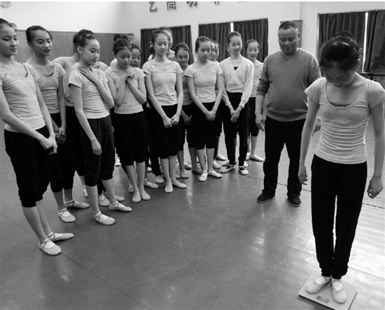 2月21日,記者來到浙江藝術(shù)職業(yè)學(xué)院舞蹈系,看著那個骨瘦如柴的女孩子輕盈地跳上體重秤,顯示是43.6公斤?!疤炖?,超重了超重了,要跑10圈了!”她說。