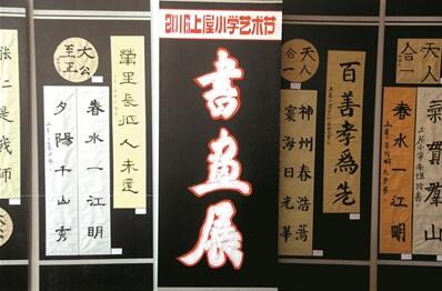 學(xué)校是教育人、培養(yǎng)人的主陣地,而深化教育改革,打造藝術(shù)特色,不僅僅是幾個教室、一個操場的概念,也絕非是一堂課、一次活動。走進上屋小學(xué),記者發(fā)現(xiàn),學(xué)校良好的藝術(shù)文化環(huán)境無時無刻不在發(fā)揮著育人作用。從名家名畫進教室、班級美術(shù)活動展區(qū)等班級藝術(shù)文化環(huán)境營造到墻畫、板報甚至是校園綠化等校園外部環(huán)境建設(shè),學(xué)校的每一處角落都散發(fā)著濃郁的藝術(shù)氣息。同時,每個樓層將學(xué)生的書法、繪畫等藝術(shù)成果進行展示,讓學(xué)生從中體會到成就感、享受到審美的愉悅。孩子們在學(xué)校濃厚的藝術(shù)教育氛圍中,盡展才華、盡情發(fā)揮,放飛自己的夢想。