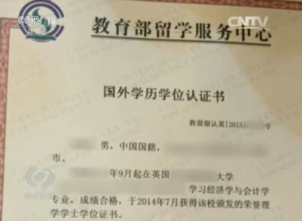 而已經(jīng)在國內(nèi)找到一個工作崗位的張某某,根據(jù)記者掌握的資料:他雖然確實在那所大學(xué)就讀過,卻未能如愿獲得畢業(yè)證。他于2015年和北京這家中介公司簽訂了委托合同,花費十多萬元,公司幫他完成認(rèn)證服務(wù)。