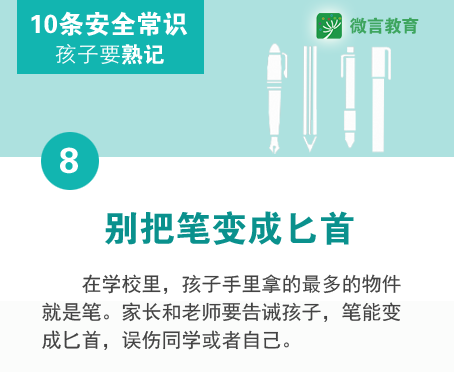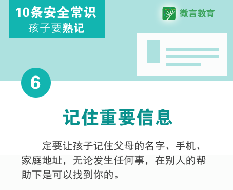 除了冬季安全六防,還有一些日常的安全常識,父母也要教給孩子,讓孩子的安全意識得到強化,平安快樂地度過每一天。