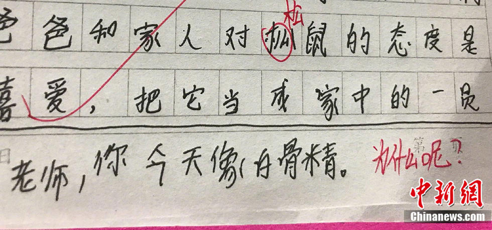 近日,貴州省谷隴翁板小學(xué)的語文老師張沁文,曬出了學(xué)生寫在作業(yè)里的“金句”?!袄蠋煟闾詰倭?,QQ空間都是自己照片”;“顏值升高才有人喜歡您”……孩子們的童言無忌令人哭笑不得,老師的評論也很亮眼。