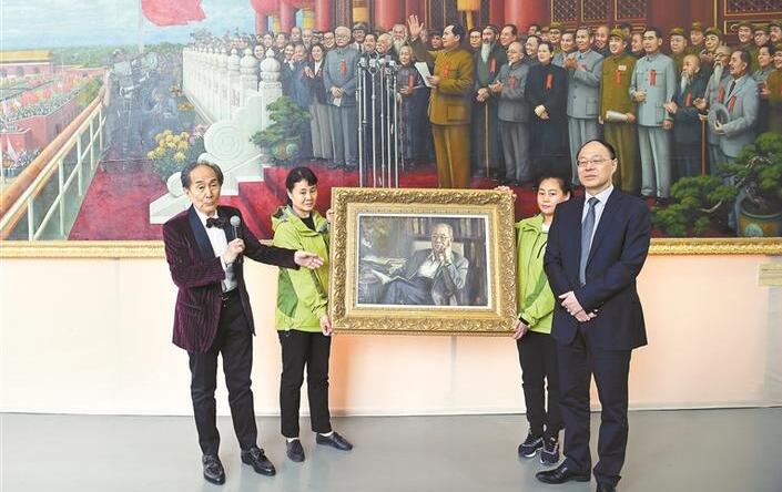 ▲劉宇一(左一)向深圳大學(xué)贈(zèng)畫(huà)。深圳晚報(bào)記者 馮明 攝