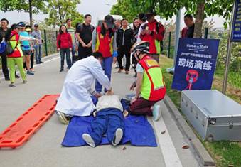 在醫(yī)療保障方面,組委會專門在重點路段進行了實戰(zhàn)演練,模擬馬拉松比賽選手突然出現(xiàn)心臟驟停、扭傷、跌倒等突發(fā)情況,醫(yī)療救援隊員給予現(xiàn)場電除顫、心肺復(fù)蘇、外傷包扎等急救工作,緊急聯(lián)系120急救車轉(zhuǎn)診至定點醫(yī)院。整個醫(yī)療救治過程緊張而有序。