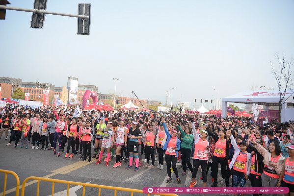 今年賽事現(xiàn)場最大的亮點在于,取消了開賽儀式,僅保留鳴槍一項流程。主會場起點區(qū)域沒有了大型噴繪的主席臺,取而代之的是小巧簡約的發(fā)令臺。上午7點,不間斷的熱身音樂響徹整個甜蜜小鎮(zhèn),運動員們在進入賽道集結(jié)后,配合著音樂,跟隨著健身教練的指引一起熱身。上午8點30分,鳴槍嘉賓們準時登臺鳴槍,全體3000多名跑者一起沖出起點門,化作一片粉紅色的海洋,向著終點奔去。“取消開賽儀式對跑者來說是非常貼心的一項舉措,讓我們在進入賽道之后依然能夠繼續(xù)熱身,時間一到準時開跑,整個參賽流程也更加流暢了。”參賽選手在賽事現(xiàn)場直言道,簡化起跑前的儀式流程,對于跑者來說是一種更好的參賽體驗。