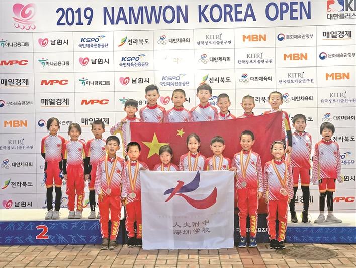 晶報05月16日訊 近日,韓國南原國際輪滑公開賽順利舉行,吸引了來自全球16個國家和地區(qū)的1000多名優(yōu)秀運(yùn)動員參賽。晶報記者從人大附中深圳學(xué)校獲悉,該校小學(xué)輪滑隊的11名選手首次代表中國MX青少年隊參加了本次國際輪滑公開賽的小學(xué)(1&2年級)的項(xiàng)目比賽,經(jīng)過激烈角逐,喜獲2金4銀13銅。值得一提的是,這是剛成立一年的人大附中深圳學(xué)校輪滑隊隊員們在國際舞臺上的首次亮相。學(xué)校以愛與尊重為核心理念,注重學(xué)生的全面發(fā)展,并注重突出發(fā)展學(xué)生特長,充分挖掘?qū)W生潛力,開設(shè)了豐富多元的課程,其中,開設(shè)了輪滑課等必修課,以及舞蹈、國際象棋等特色課程。