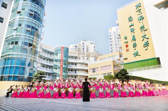 發(fā)掘民族器樂個(gè)性,傳承優(yōu)秀文化精髓,既是藝術(shù)工作者的一種情懷,更是教育工作者的一種使命。北京師范大學(xué)南山附屬學(xué)校小學(xué)部秉承實(shí)施“個(gè)性化素質(zhì)教育”的辦學(xué)理念,在“校園七色花,朵朵都精彩”的學(xué)生發(fā)展觀指引下,于2013年10月組建了深圳市第一支少兒阮樂團(tuán),樂手平均年齡10歲,是國內(nèi)平均年齡最小的阮樂團(tuán)。經(jīng)過數(shù)年的努力,樂團(tuán)發(fā)展到百人規(guī)模,頻頻登上國內(nèi)外高規(guī)格平臺演出,成為享譽(yù)國內(nèi)外的少兒阮樂團(tuán)。在第二批全國中小學(xué)中華優(yōu)秀傳統(tǒng)文化藝術(shù)傳承校中,北京師范大學(xué)南山附屬學(xué)校實(shí)力上榜。
