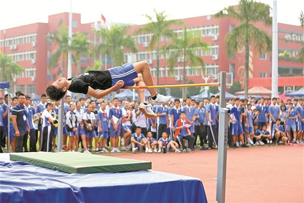 ▲沙井中學(xué)學(xué)生在第十四屆體育藝術(shù)節(jié)田徑運(yùn)動(dòng)會(huì)跳高比賽中表現(xiàn)精彩。