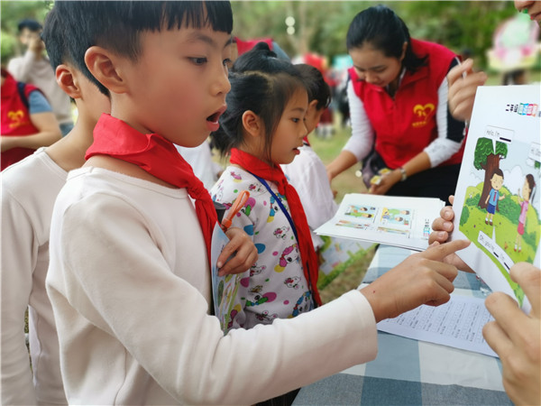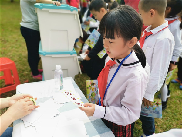 據(jù)悉,本次活動以闖關的形式,每年級各分10個關卡,每闖一關就獲得一個能量動物或者能量植物填補闖關卡的空白,各年級的學生需要在半小時內將闖關卡的空白處填滿,才算闖關成功,獲得有校長贈言的書籍一本。關卡的設置以語文、數(shù)學和英語三個科別組成,其中,最受孩子們青睞的要數(shù)“筆架說話”這個關卡,孩子們把自己相像成筆架山的一員,然后介紹自己,有同學說:“我是筆架山的大樹,我可以給大家遮蔭,讓大家不用被太陽曬到?!?、“我是筆架山的石頭,孩子們來筆架山玩的時候,可以把我們拼在一起做拼圖?!?、“我想成為筆架山的暗綠繡眼鳥,就是嘴巴尖尖的,頭上綠綠的,眼睛邊上有點白色的那種,我要站在筆架山的枝頭上盡情歌唱,紅紅的火焰花為我做背景!”......孩子們通過豐富的相信力,盡情在老師與家長義工面前展現(xiàn)臨場的表達能力。