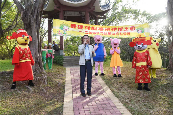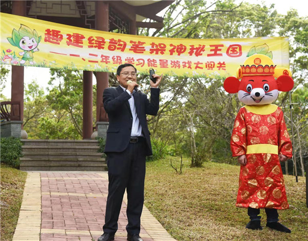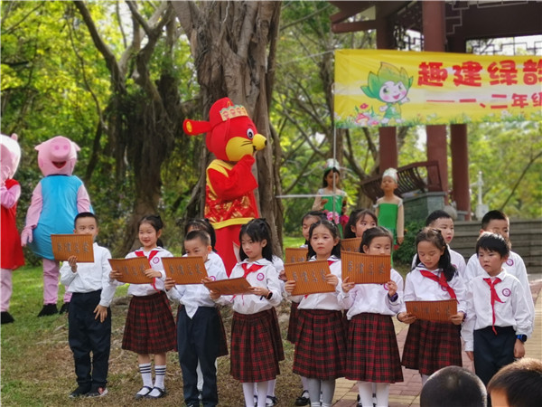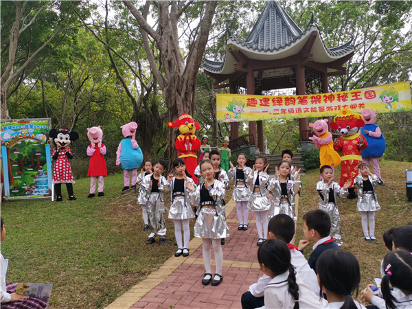 在鳥語相伴下,深圳市學生文聯(lián)秘書長謝晨的講話拉開本次活動的序幕,他贊揚了華新小學學生們學業(yè)上的優(yōu)秀表現(xiàn),肯定本次活動寓教于自然的教學方式,也表達了多次參加華新小學的活動的喜悅之情。隨后,每個年級各準備了兩個節(jié)目為現(xiàn)場帶來歡樂的氣氛,“綠韻筆架?趣建我的學習能量王國”活動正式開始,學生們紛紛往自己年級的活動區(qū)域飛奔而去。