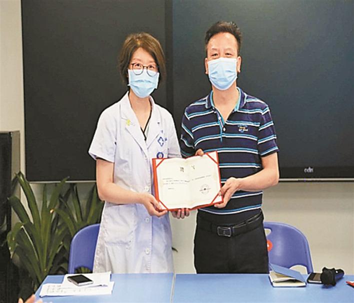 新沙小學校長給孫虹醫(yī)生頒發(fā)健康副校長聘書。