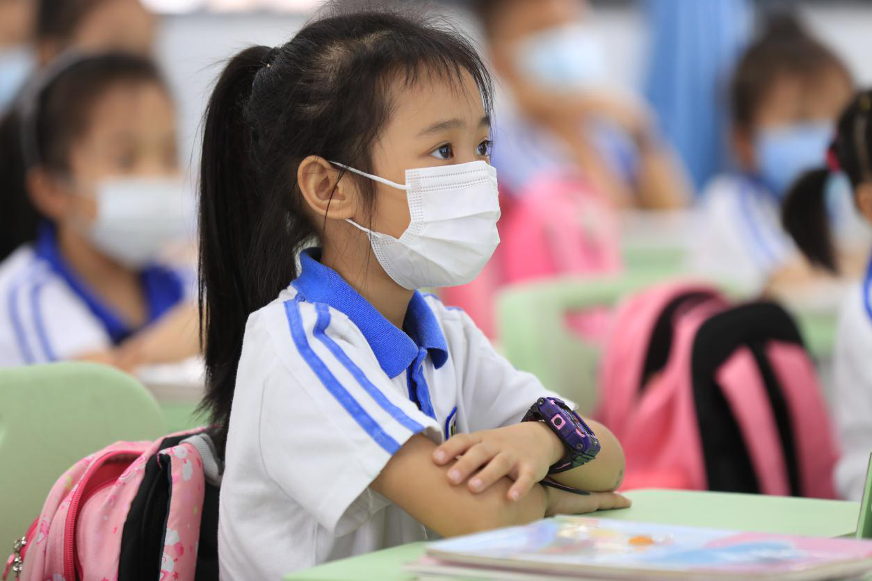 上課時也是要戴口罩的,但這并不影響大家上課的積極,依然是爭先搶后的舉手。