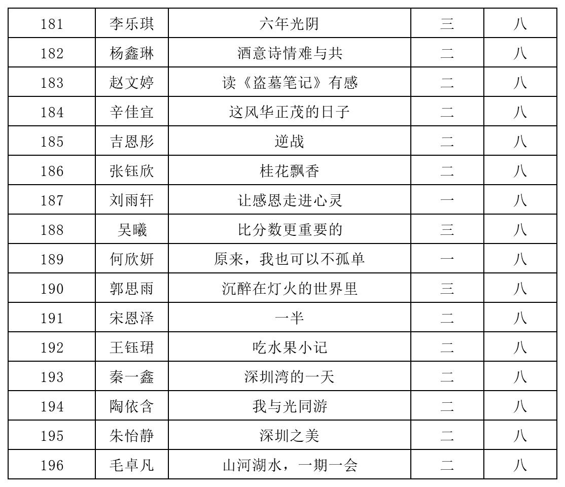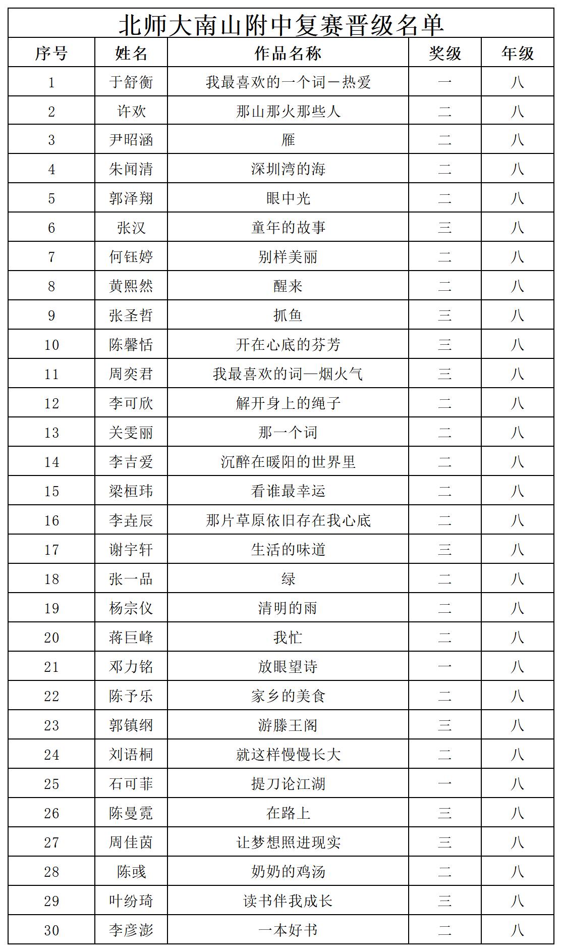 自2021年1月,活動征稿啟動以來,獲得了深圳市廣大中小學(xué)生、教師、文學(xué)愛好者的熱烈響應(yīng)積極參與,吸引了深圳百余所學(xué)校的上萬人關(guān)注報名。現(xiàn)公布北師大南山附屬學(xué)校中學(xué)部晉級復(fù)賽名單如下: