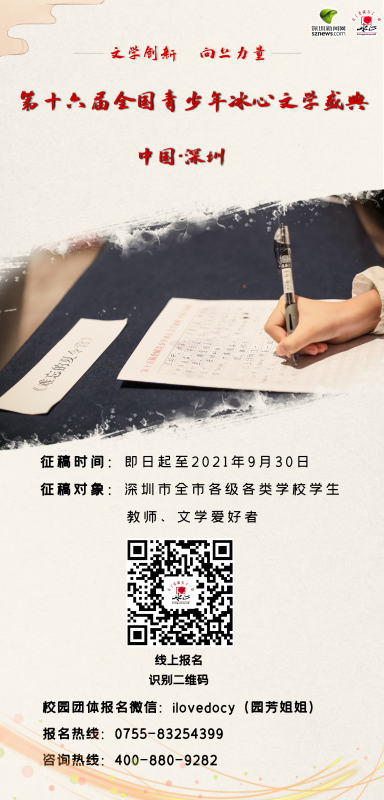 全國青少年冰心文學(xué)盛典組委會中國·深圳官網(wǎng)及公眾號發(fā)布