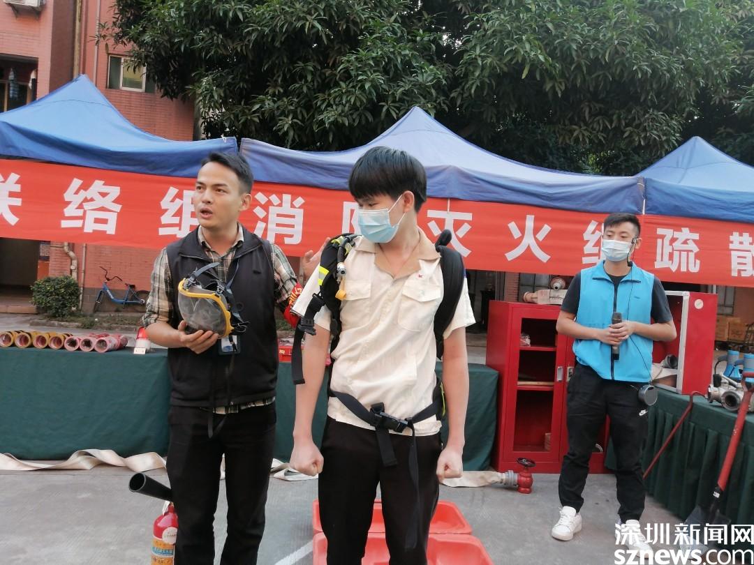 演練情景設(shè)定為工業(yè)園巡查人員發(fā)現(xiàn)火情,立刻上報(bào)并報(bào)警。隨后火警警報(bào)驟響,樓道內(nèi)冒出濃煙,疏散演練正式開始。工業(yè)園職工、居民在各組工作人員的指揮下,用口罩、衣服等捂口鼻,屈膝彎腰沿著既定的疏散路線,迅速向安全區(qū)域撤離。隨后社區(qū)消防員到達(dá)現(xiàn)場,用消防高壓水槍進(jìn)行高空滅火,撲滅火災(zāi),解除警報(bào)。演練結(jié)束后,社區(qū)還組織工業(yè)園職工、居民參加安全體驗(yàn)活動(dòng),學(xué)習(xí)消防救援設(shè)備的用法、進(jìn)行消防結(jié)繩和滅火實(shí)操訓(xùn)練。