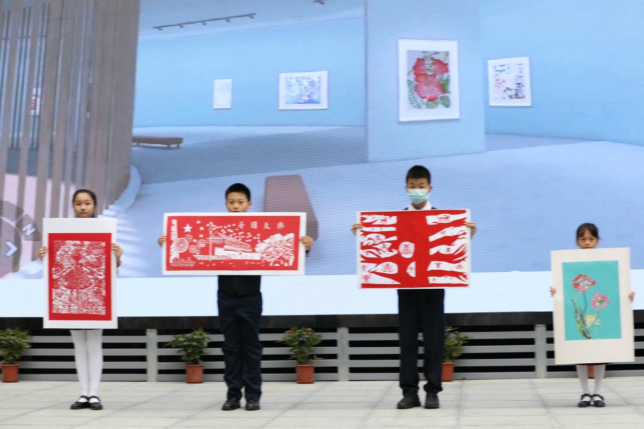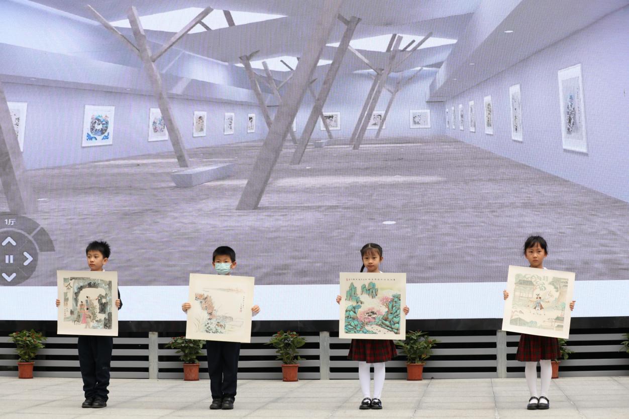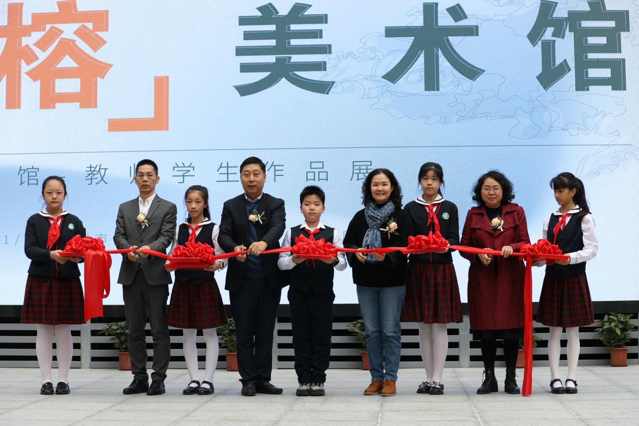 與開館和展覽同時推出的,還有“榕”美術館的云展館。云展館以新媒體形式,擴大了展覽范圍,使得學校的美術美育成果得以向外部展示。推出之際,學校舉行了云展館的剪彩儀式。解署昱校長致辭并宣布開館,福田區(qū)教科院藝術辦林影萍主任、解署昱校長、劉權祥副校長、姚紅霞副校長為云美術館剪彩,并向全校學生贈送了云展館資料。