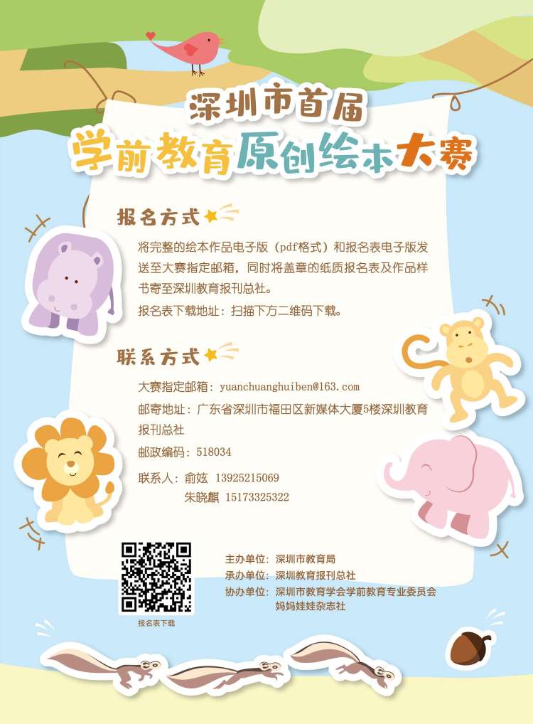 原創(chuàng)繪本大賽的參賽對(duì)象為全市幼兒園教師、在園幼兒及其家長(zhǎng),每所幼兒園的參賽作品數(shù)量沒(méi)有限制。有意參賽的選手可掃碼獲取報(bào)名表并了解詳細(xì)要求。作品征集時(shí)間為2022年1月10日-2月28日,3月為初評(píng)與終評(píng)階段,擬于3月底公布評(píng)審結(jié)果并舉行頒獎(jiǎng)儀式。