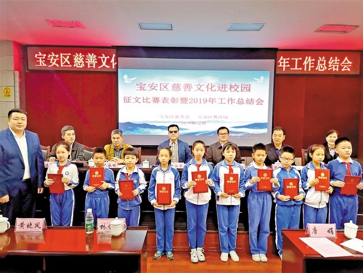寶安區(qū)慈善文化進(jìn)校園征文比賽表彰暨2019年度工作總結(jié)會(huì)在寶安實(shí)驗(yàn)學(xué)校會(huì)議室舉行。會(huì)上對(duì)征文比賽獲獎(jiǎng)?wù)吆蛢?yōu)秀組織單位進(jìn)行表彰。
