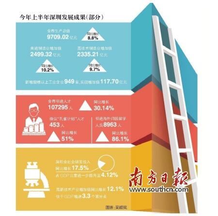 創(chuàng)新是深圳率先實現成功轉型的亮麗名片,是深圳率先實現動力轉換的制勝秘訣。如果說,作為特區(qū),深圳之“特”過去更多地體現在政策探路,那么,現在則更多體現在轉型創(chuàng)新。近年來,深圳經濟特區(qū)把創(chuàng)新作為城市主導戰(zhàn)略,先后制定了全國首部國家創(chuàng)新型城市總體規(guī)劃和促進科技創(chuàng)新的地方性法規(guī),出臺自主創(chuàng)新“33條”、創(chuàng)新驅動發(fā)展“1+10”若干措施等一系列政策措施。經過多年不懈的努力,深圳創(chuàng)新驅動發(fā)展取得了積極成效,創(chuàng)新正加快向高端前沿邁進,從跟跑、并跑向領跑躍升。在創(chuàng)新的驅動下,深圳實現了新常態(tài)下動力轉換和新一輪轉型升級,保持了有質量、有效益、可持續(xù)的發(fā)展。事實為證:今年上半年,深圳全社會研發(fā)投入增長17.5%,占GDP比重進一步提升至4.12%;高新技術產業(yè)增加值增長12.1%,快于GDP增速3.3個百分點,呈現出“逐季攀高、質量提升、結構優(yōu)化、動力增強、趨勢向好”的鮮明特點。