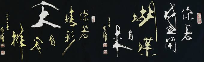 黃明勝?gòu)氖聲ㄅc篆刻鉆研已逾30年,他認(rèn)為:美感的建立才是學(xué)習(xí)藝術(shù)的第一步,而非技法;奠定了美感的基礎(chǔ)再?gòu)闹薪⒆约旱膬r(jià)值,隨波不逐流。秉持『自出新意,不踐古人』的理念,書寫從未臨帖,歷經(jīng)數(shù)十載,而今創(chuàng)作出融合中國(guó)傳統(tǒng)藝術(shù)與現(xiàn)代風(fēng)格的書法創(chuàng)新體裁—『書畫體』。