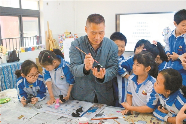 12月第一期非遺文化課堂已于上周四下午開(kāi)始?;搓?yáng)泥泥狗代表性非遺傳承人張華偉一行來(lái)到深圳市龍華區(qū)外國(guó)語(yǔ)學(xué)校,為同學(xué)們分享了泥泥狗捶泥、煮染等制作工藝和文化歷史。