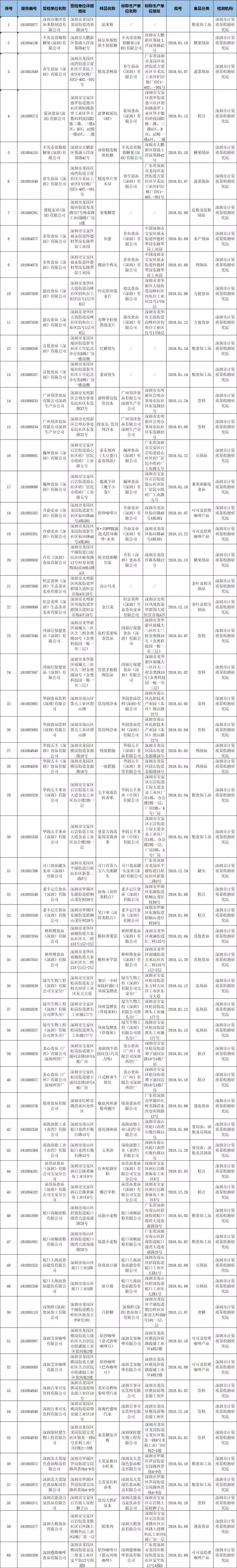 2019年食品安全抽樣檢驗(yàn)情況通報(bào)