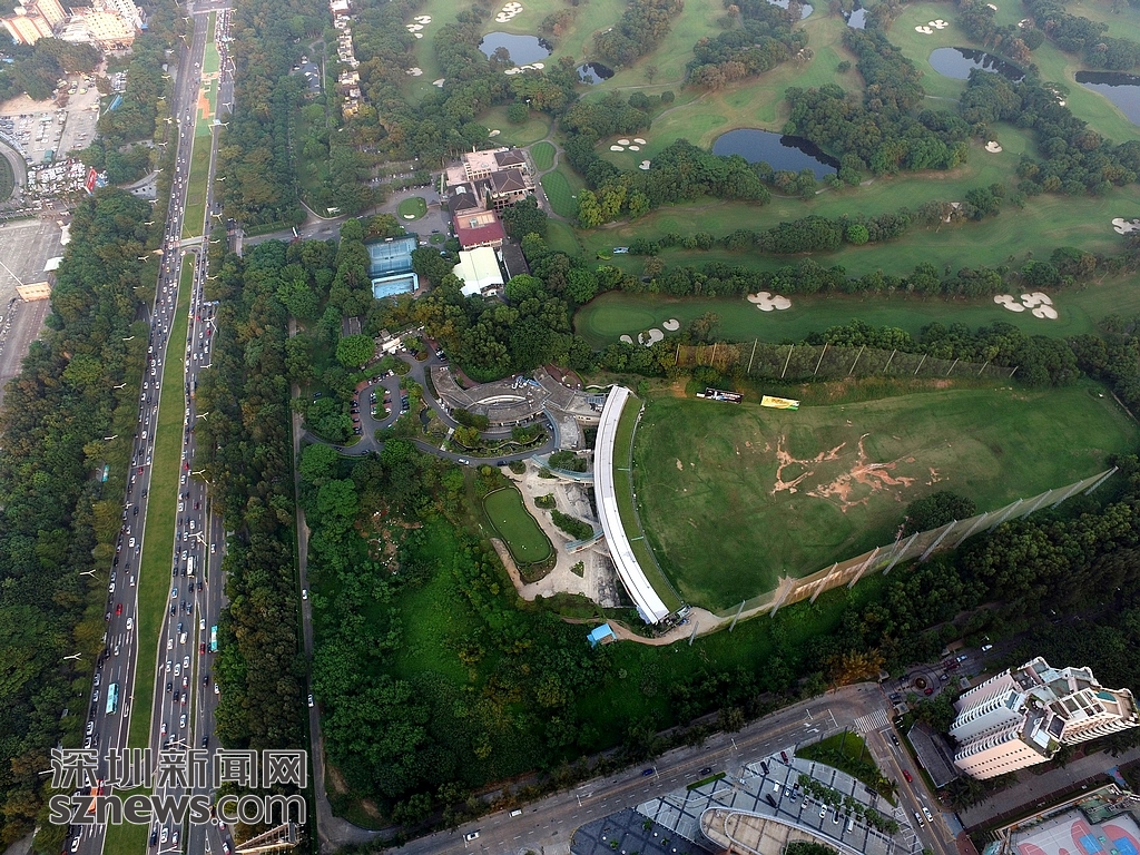 從高空俯瞰,深南大道就位于深圳高爾夫俱樂部球場旁邊