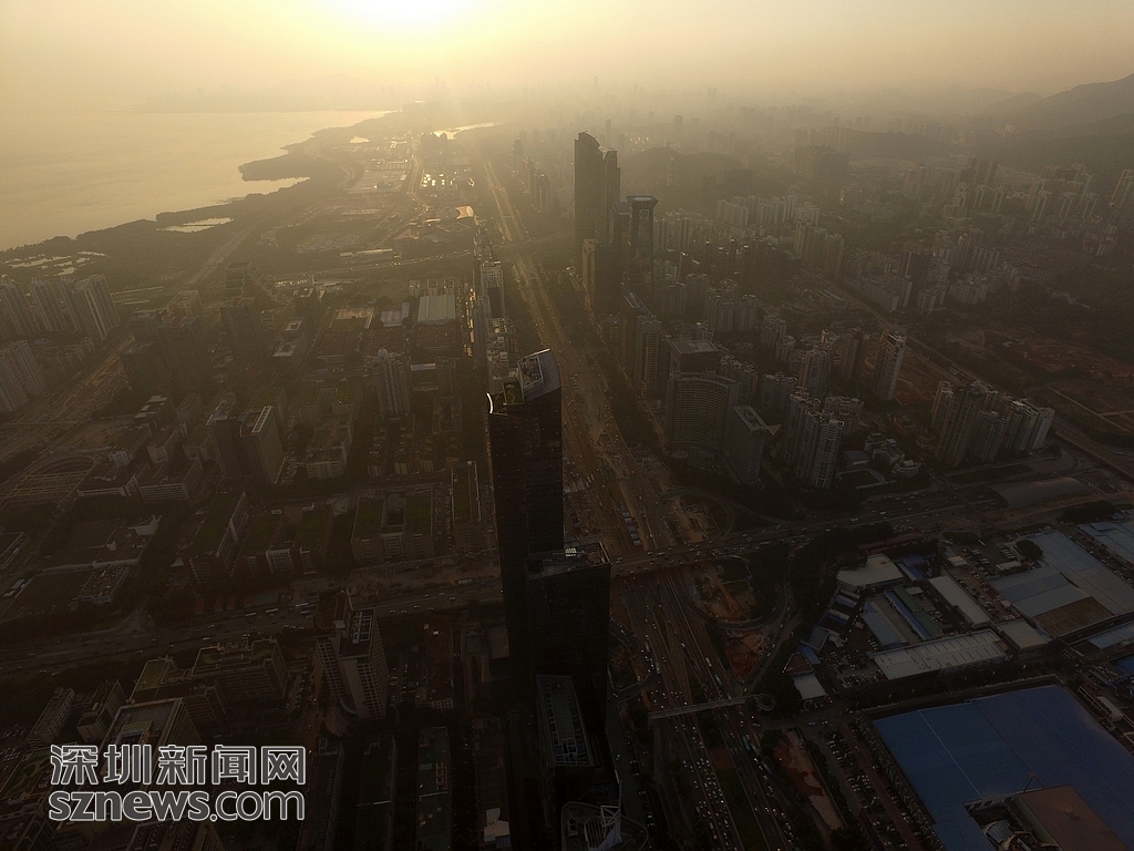 在夕陽西墜的低色溫下,高爾夫球場在周邊林立高樓和晚高峰車流的映襯下顯得格外安靜。深圳新聞網(wǎng)記者 陳飛 鄭曉鵬 攝