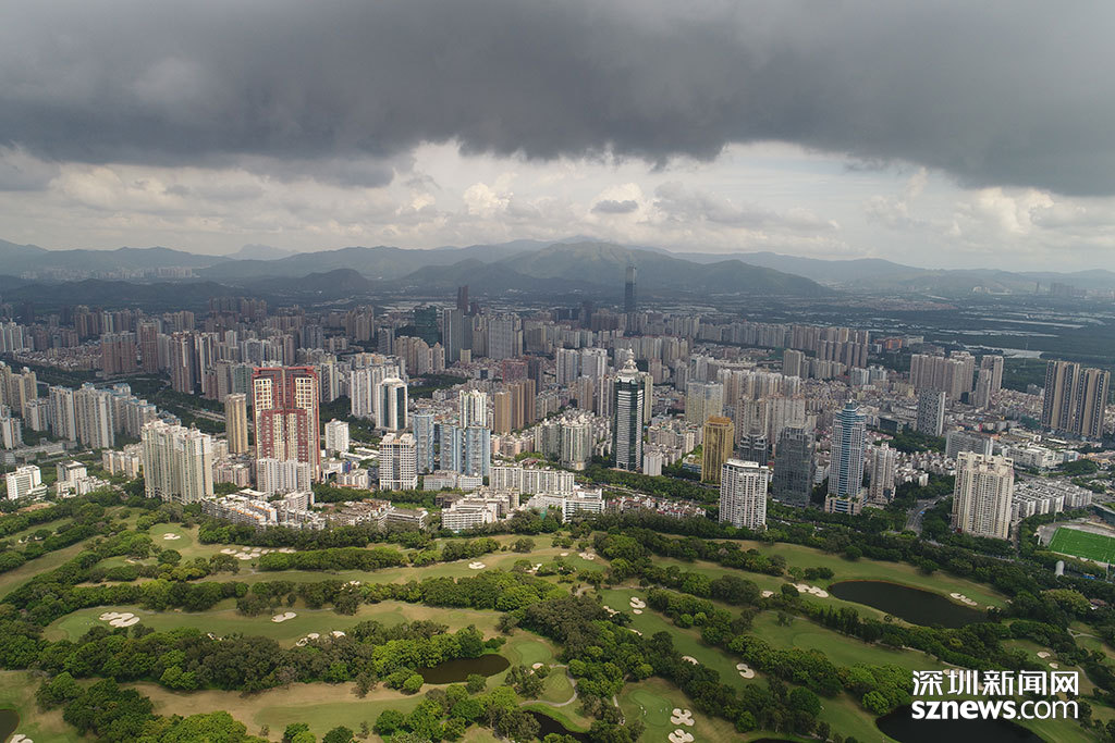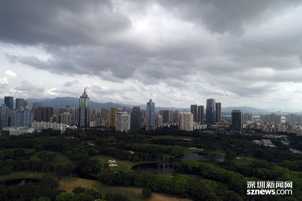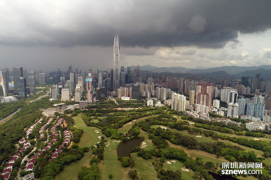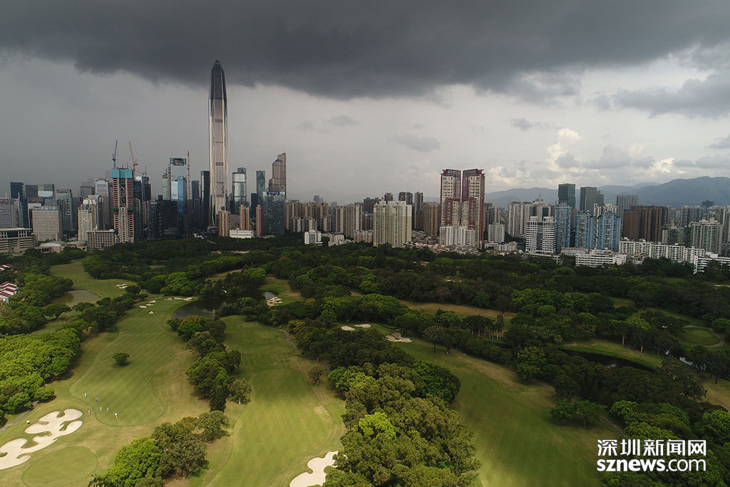烏云籠罩下的平安大廈與深圳高爾夫俱樂部球場