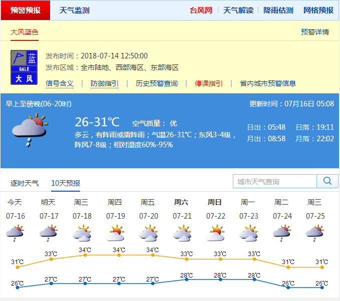 據(jù)深圳市氣象臺綜合各種資料預測,今年7月中旬至8月上旬深圳天氣將呈“有臺風影響,陽光陣雨相間,多高溫酷熱天氣”的特點。此外,7月下旬至8月上旬主要有3次明顯降雨過程,分別出現(xiàn)在7月21日至22日、7月30日至31日和8月9日至10日。
