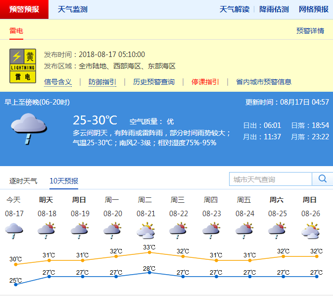 深圳新聞網(wǎng)訊(記者 施冰冰)深圳市氣象臺(tái)預(yù)計(jì),17日深圳多云間陰天,有陣雨,部分時(shí)間雨勢(shì)較大,氣溫26-30℃;18-19日多云,間中有陣雨或雷陣雨;20日起陽(yáng)光增多,偶有短時(shí)陣雨,天氣趨于炎熱。