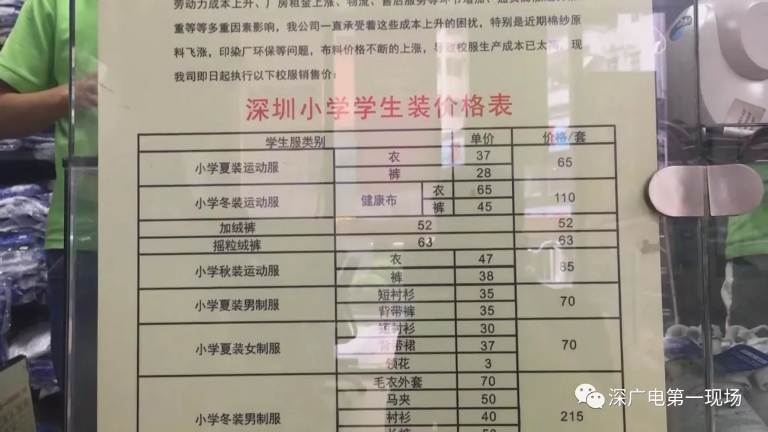 記者了解到,2011年,深圳校服曾進行過調(diào)價,當(dāng)時教育部門發(fā)布通告稱,由于廠家成本上升,校服價格統(tǒng)一調(diào)整,平均價格比之前高出14.02%。之后,這一價格標(biāo)準一直沿用。