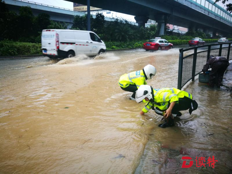 9月16日上午7時(shí)許,深圳已接近“山竹”的10級(jí)風(fēng)圈,羅湖區(qū)已是風(fēng)雨交加,風(fēng)力正在逐漸增強(qiáng)。艾力軍領(lǐng)著姚書龍、陳展廷、陳展聰3名警員駕駛警車,開始了迎戰(zhàn)臺(tái)風(fēng)的巡邏。深南路、文錦路、泥崗路、沿河路……一邊巡邏,一邊尋找道路交通安全隱患,一路上除了警車,已經(jīng)很難看到其它車輛,看著空曠的道路,艾力軍的心里卻感到了踏實(shí)。