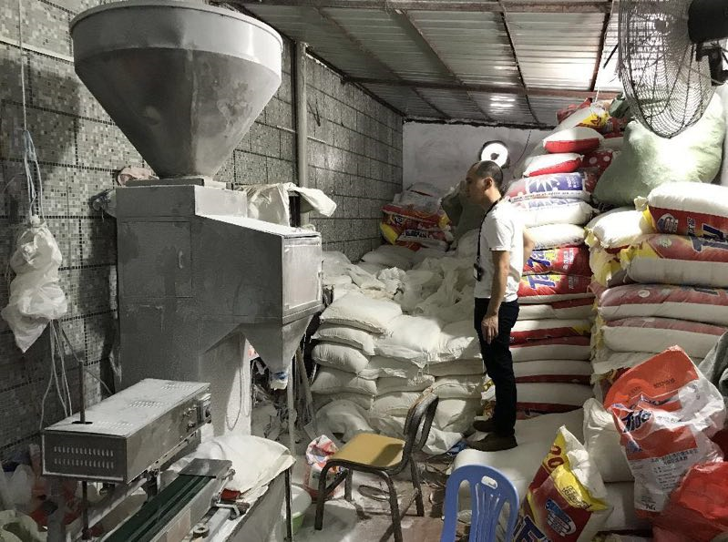 執(zhí)法人員來(lái)到位于龍東社區(qū)同昌路的一個(gè)工業(yè)區(qū)進(jìn)行突擊檢查。剛進(jìn)入該工業(yè)區(qū),執(zhí)法人員就發(fā)現(xiàn)有幾間鐵皮房大門(mén)緊鎖,通過(guò)門(mén)縫還能看到大量各品牌的洗衣粉、消毒液,以及各式設(shè)備數(shù)臺(tái)。經(jīng)檢查,現(xiàn)場(chǎng)共有這類(lèi)鐵皮房3個(gè),分散在工業(yè)園區(qū)3個(gè)不起眼的角落,占地面積超過(guò)200平方米。鐵皮房?jī)?nèi)環(huán)境惡劣、電線(xiàn)亂搭,地上堆滿(mǎn)各種標(biāo)識(shí)的加工原料以及各種日化品牌的包裝袋,數(shù)量巨大。