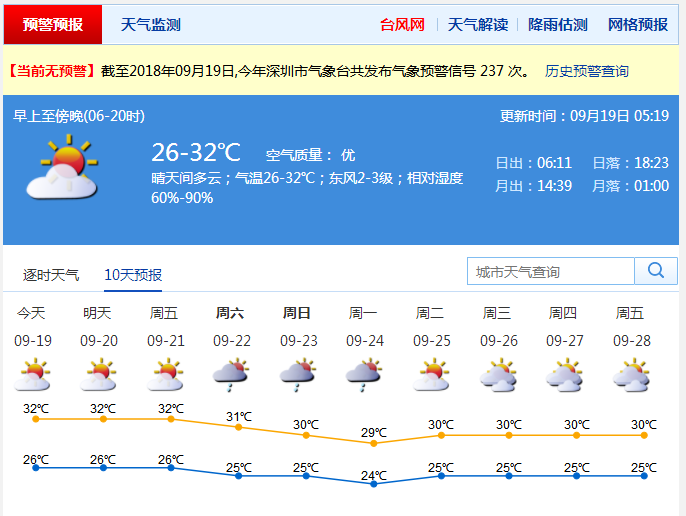 市氣象臺預(yù)測,20至24日,深圳仍以多云天氣為主,有短時(shí)陣雨,最高氣溫29℃~32℃。25至26日,晴天間多云。