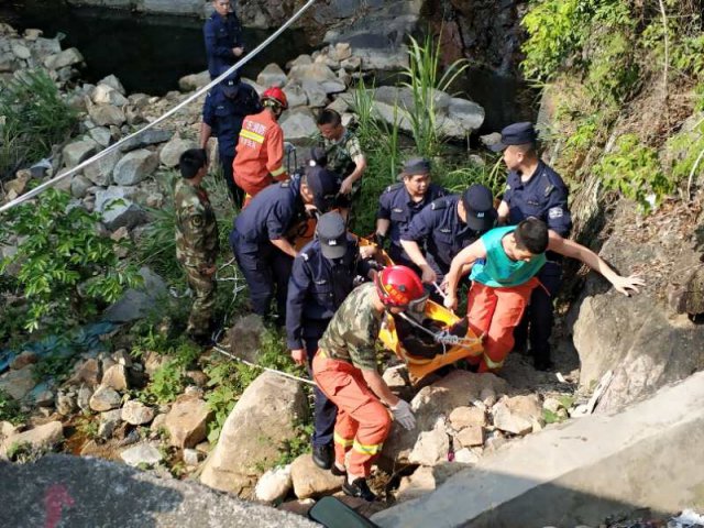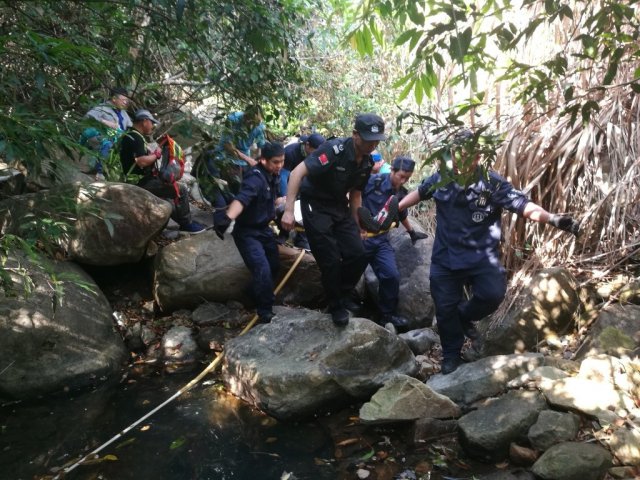 到現(xiàn)場后,民警了解發(fā)現(xiàn)該男子在爬山的過程中不小心踩到苔蘚摔倒受傷,當(dāng)場倒地不起,無法動彈。情況緊急,四周山路陡峭,120急救人員短時間內(nèi)難以到達進行救治。這時,葉孟庭等民警當(dāng)機立斷,將同行救援隊員分成兩組,用擔(dān)架將傷者一步步接力抬下山。此處位于亂石山澗中,隊員只能齊心協(xié)力抬著擔(dān)架一點一點小心挪移,坡陡石滑,空氣悶濕,加之荊棘擋道,隊員們汗如雨下,整整花了2個多小時才將擔(dān)架安全抬到盤山公路懸崖邊,隊員們個個衣衫濕透,手腳上的擦劃痕跡清晰可見。