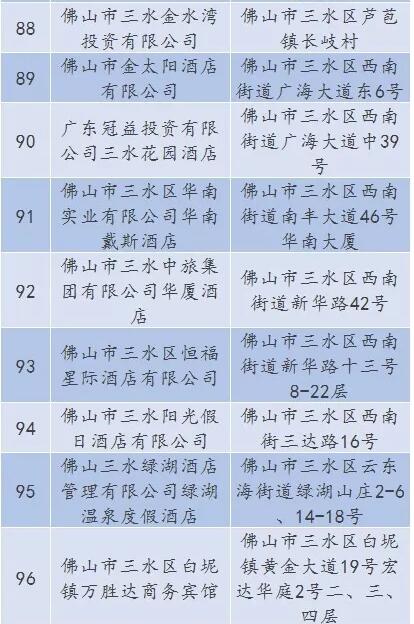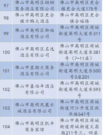 廣東省A級(jí)住宿單位名單