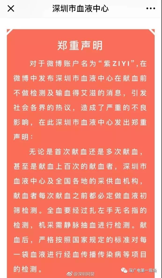 “深圳獻(xiàn)血不檢測、輸血得艾滋”的消息