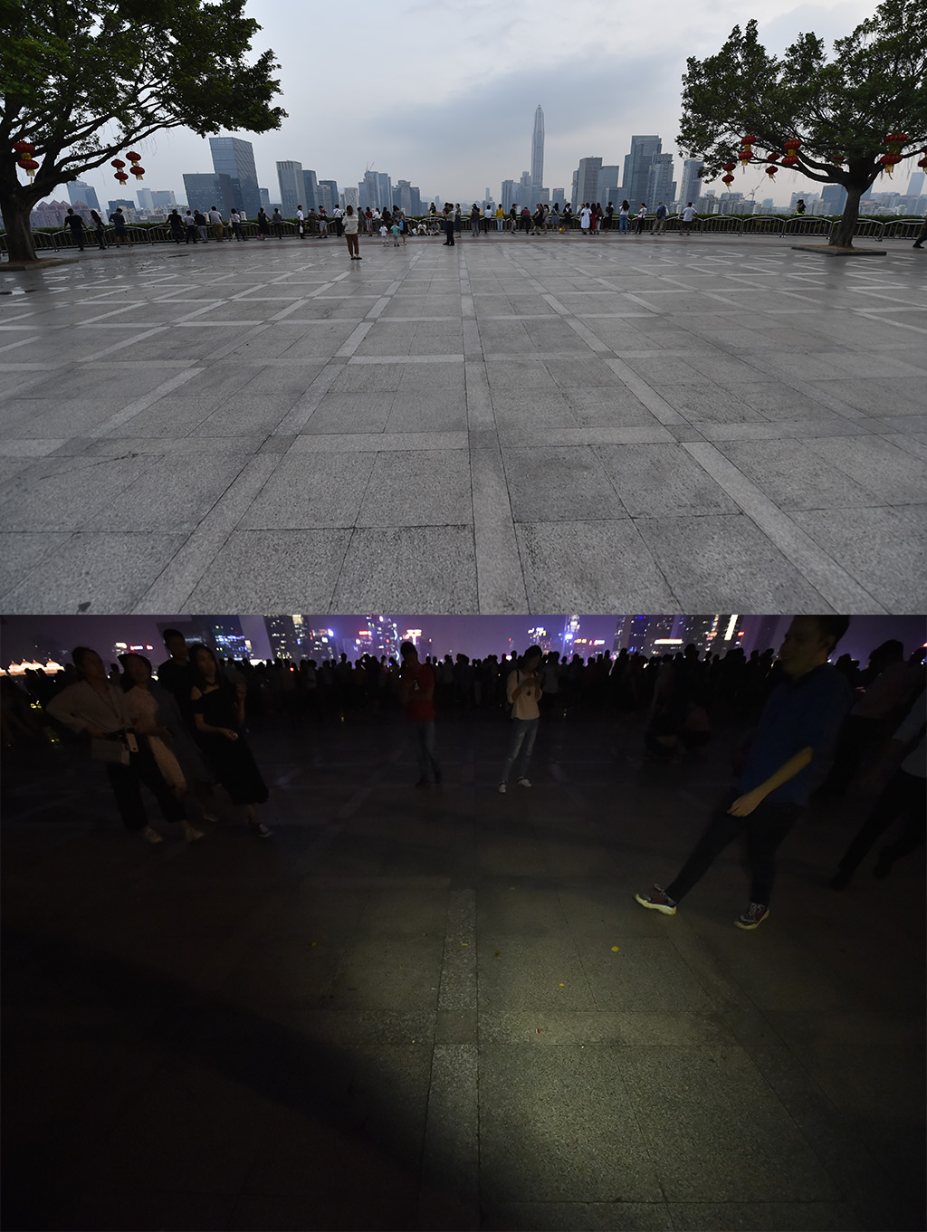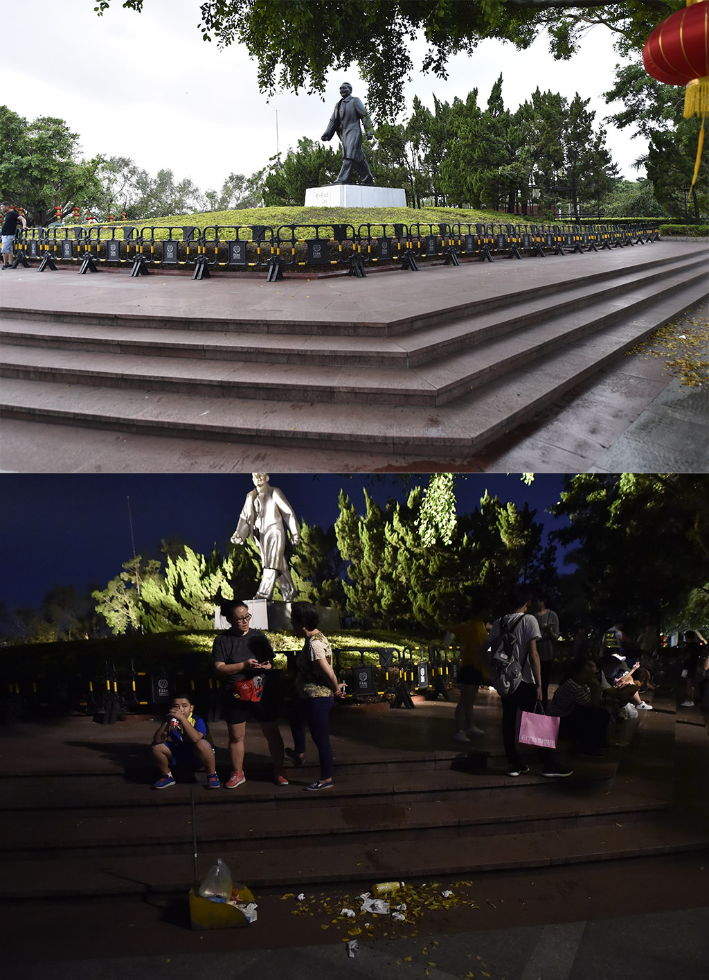 燈光秀期間,臺(tái)階和廣場(chǎng)連接的過(guò)道無(wú)垃圾遺留