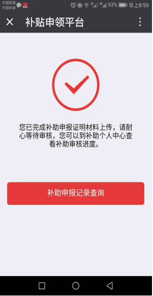 第五步:完成補(bǔ)助預(yù)登記后,點(diǎn)擊【補(bǔ)助申報(bào)記錄查詢】即可查詢個(gè)人補(bǔ)助申請(qǐng)進(jìn)度了。