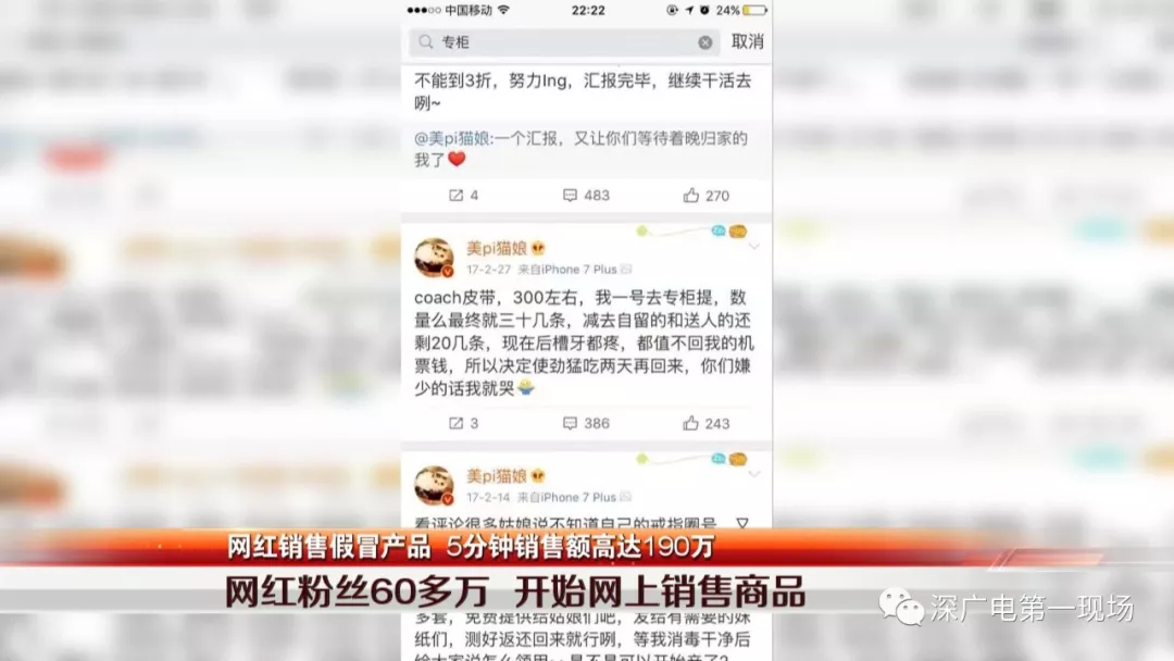 經(jīng)審訊,嫌疑人于某交代,她2013年注冊了@美Pi貓娘的微博賬號,開始做彩妝的分享和解答,2016年,已擁有近30萬粉絲的她來到深圳做網(wǎng)店,通過自己創(chuàng)立的深圳某珠寶公司做珠寶、彩妝。同時(shí),還通過微博活動以及關(guān)愛小的動物的善舉吸引更多的人關(guān)注,共積累了62萬粉絲。