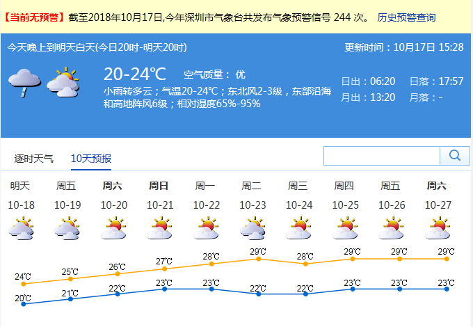 市氣象局發(fā)布未來十天天氣預(yù)報(數(shù)據(jù)更新于10月17日15時28分)
