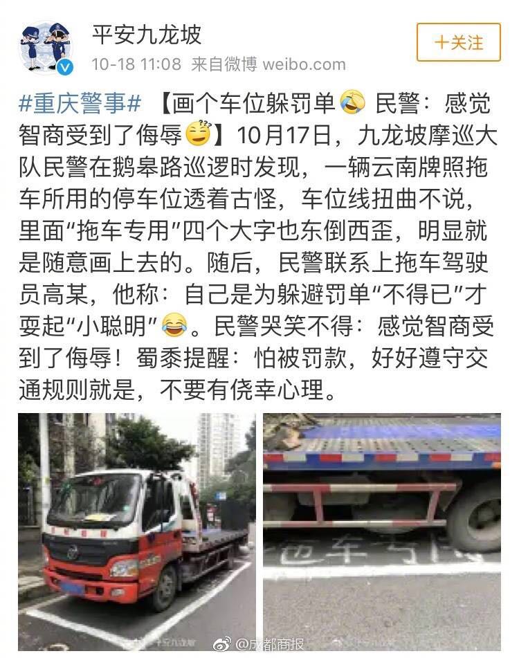 一貨車司機(jī)為躲避罰單,自己畫了個(gè)車位